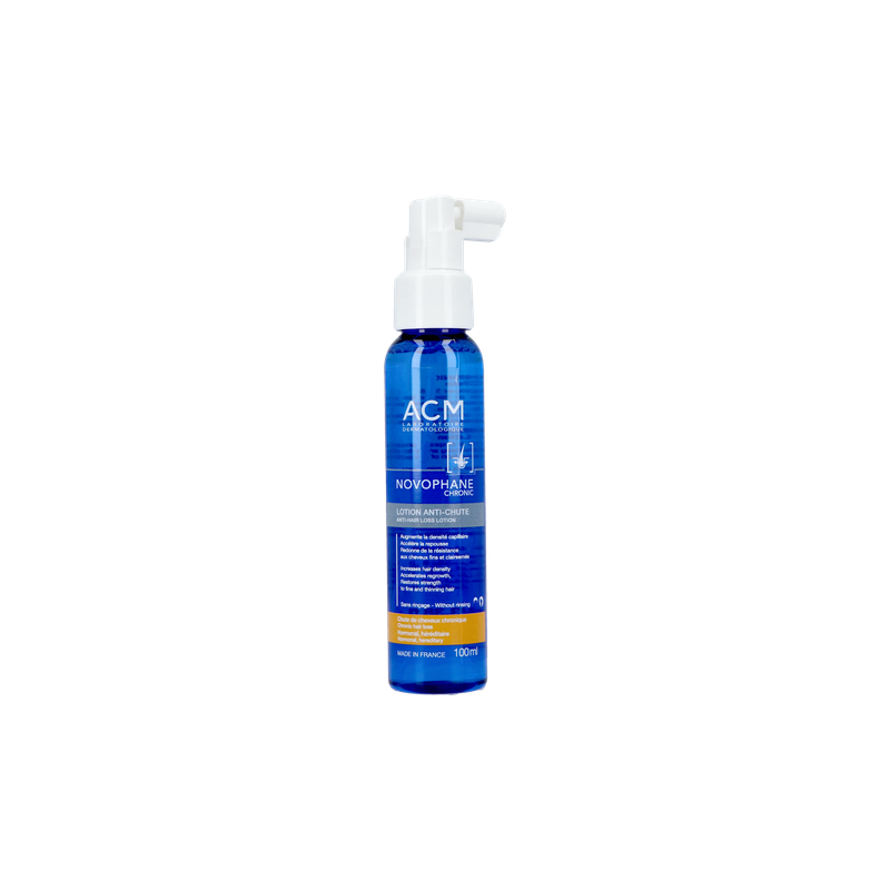 ACM NOVOPHANE CHRONIC LOTION ANTI CHUTE agit sur les facteurs de la chute de cheveux chronique pour freiner la chute et stimuler la repousse.