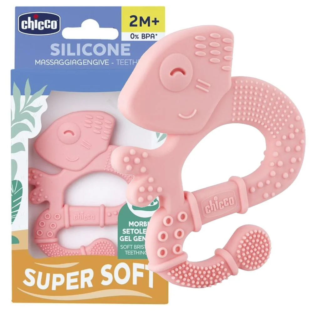 Chicco Anneau de Dentition +2m Soft & Clean Iguane Rose est conçu pour soulager la douleur des gencives sensibles de bébé. Grâce à ses reliefs sur la surface, il offre un massage agréable tout en étant parfait à mordiller. Doux et agréable en bouche, il aide à apaiser les gencives de manière efficace.