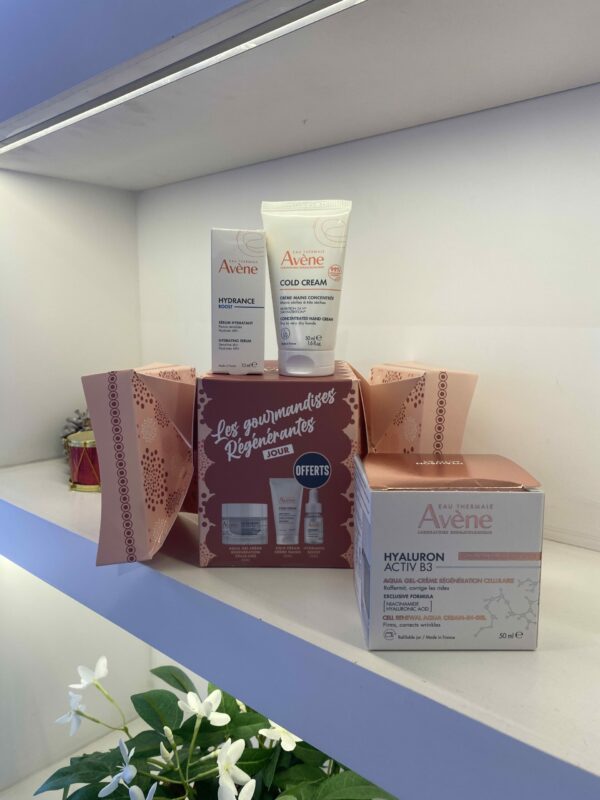 Elle se poursuit avec la Avène Hyaluron Activ B3 Aqua-Gel Crème Régénérante, un soin multifonction qui hydrate intensément, aide à régénérer la peau et à renforcer la barrière cutanée. Sa texture aqua-gel fraîche procure un effet repulpant immédiat et un fini confortable, parfait pour la journée.