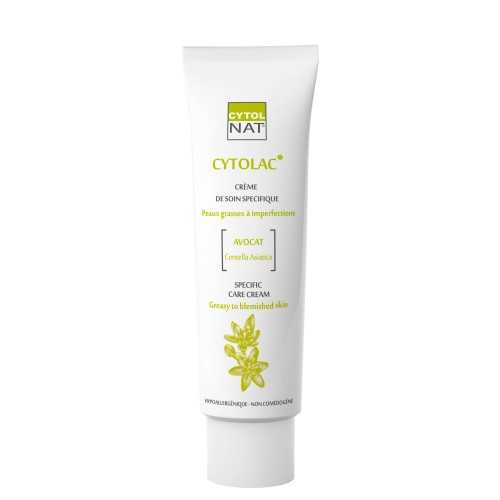 La Crème de Soin Peaux à Imperfections de la gamme CYTOLAC de CYTOLNAT a été spécialement conçue pour les peaux grasses et celles qui présentent des imperfections pour les assainir, apaiser et hydrater. Le CYTOLAC, émulsion huile dans l’eau (H/E), participe à la restauration du film hydrolipidique cutané qui est la barrière naturelle de la peau. Sa formule enrichie de l’asiaticoside, acides madécassique et asiatique extraits de Centella Asiatica, cette crème est reconnue pour améliorer le processus de réparation de l’épiderme et pour ses propriétés apaisantes et réparatrices.