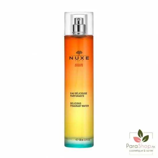 NUXE Sun Eau Delicieuse Parfumante est un vaporisateur d’eau parfumante; Les arômes qui la composent sont frais et rappellent le temps de l’été. Cet atout beauté qui permet de vivifier la peau avec un mélange de notes d’orange douce et de petit grain éblouissent, de coco et de fleurs de Tiaré finalisées par des notes de vanille et de muscs.