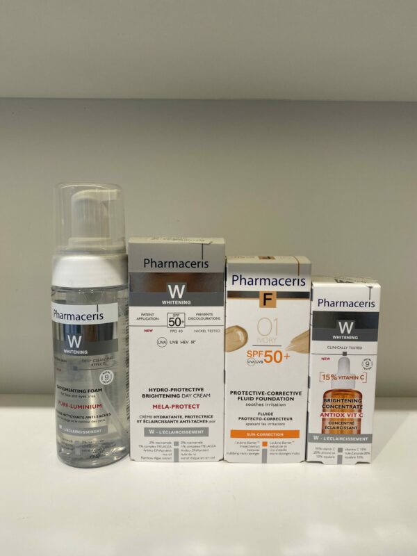 La Routine Pure Luminium Éclat & Anti-Taches est spécialement formulée pour les peaux sujettes aux taches pigmentaires, au teint terne et aux irrégularités. Elle associe nettoyage, soin éclaircissant, protection solaire et action antioxydante pour un teint visiblement plus lumineux, uniforme et protégé au quotidien.