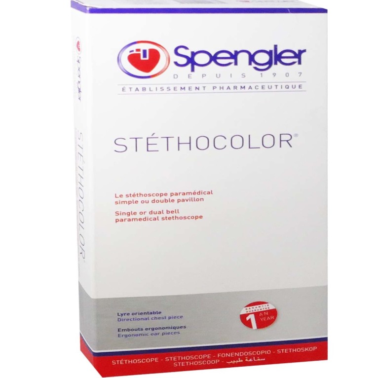 Spengler stéthocolor le stéthoscope à prix discount dans votre parapharmacie à prix discount.Le stéthoscope stéthocolor permet la prise de tension et l’auscultation cardiaque.Sa membrane et sa tubure sont simples.Le pavillon peut être simple ou double.La lyre est orientable avec une ressort externe