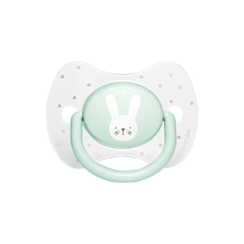 Suavinex Sucette Premium 0-6 mois avec tétine symétrique silicone “Baby lapin” – Vert