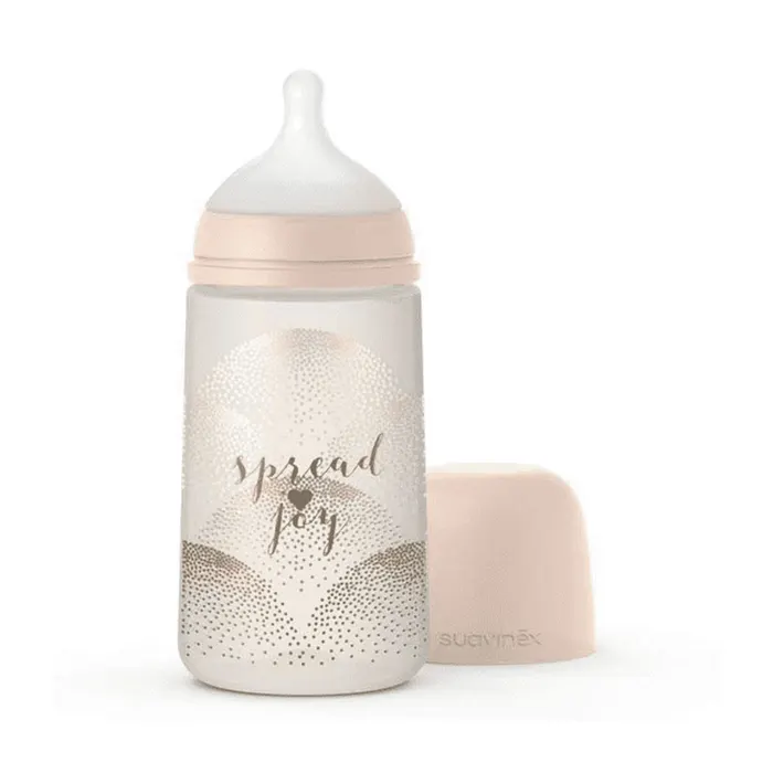 Biberon Memories capacité 270ml, nouvelle bouteille forme droite, offre une prise en main plus confortable pour bébé.