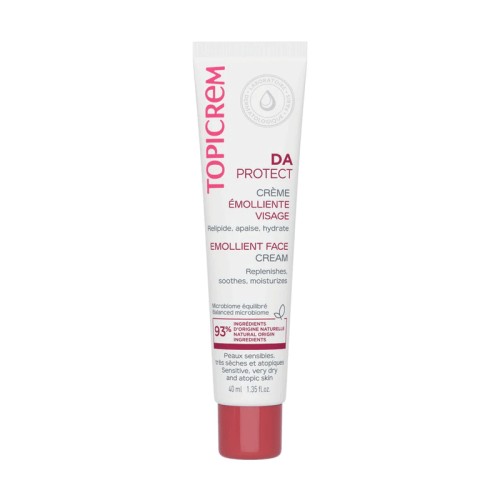 La Crème Émolliente Visage DA PROTECT relipide et apaise les peaux sensibles très sèches et atopiques. Enrichie en huile de lin, extrait de Muguet du Japon et Allantoïne, ce soin émollient visage quotidien ultra-riche apporte une triple action 24h* : relipide, apaise et hydrate. Anti-grattage, anti-irritations, la crème Emolliente visage assure l’équilibre du microbiome et aide à espacer les poussées de sécheresse sévère. Sa texture est onctueuse et fondante pénètre rapidement et laisse un fini velouté à l’effet non gras. Excellente base de maquillage.